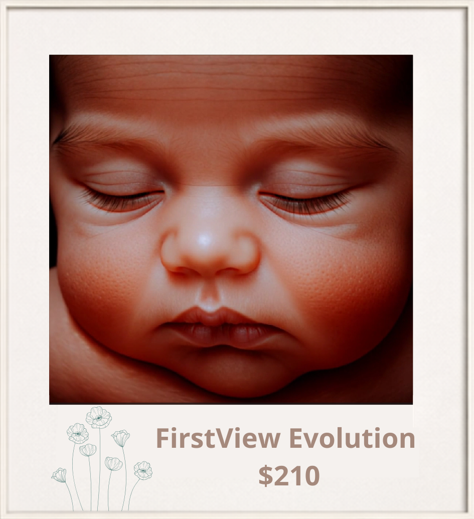 Experience our exclusive most advanced ultrasound technology available. Our FirstView Evolution system delivers unprecedented image clarity and detail that sensitively transforms your scan into a soft, photo-style glimpse of how your baby may look at birth.